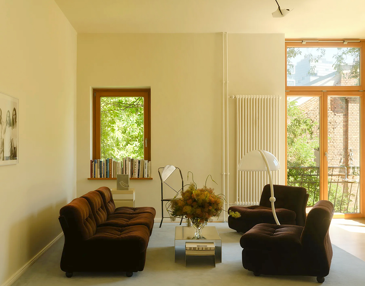 Floral designer Lilo Klinkenberg’s Berlin apartment includes Mario Bellini sofas, Anderl Kammermeier chairs, and all sorts of other vintage treasures. Photos: Volker Conradus