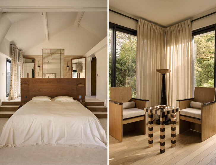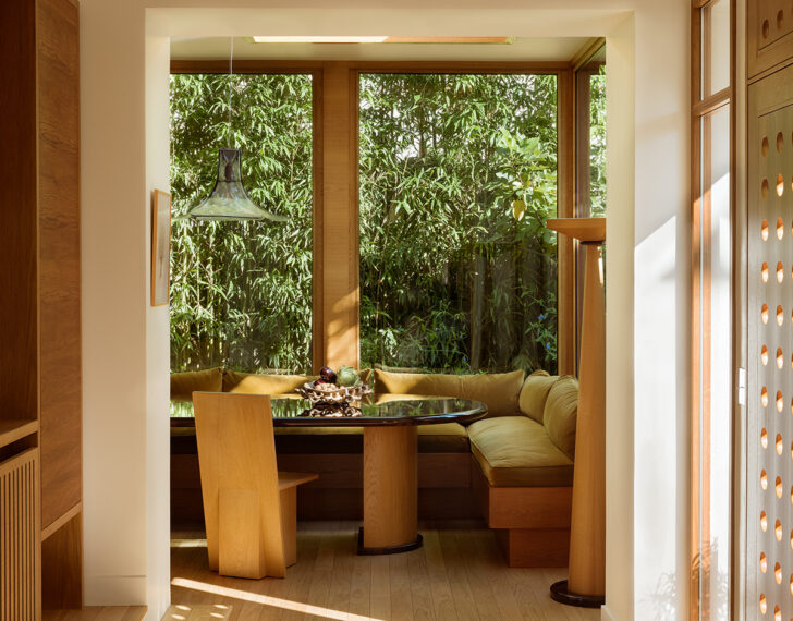 For most designers, having the chance to create a Gesamstkunstwerk — a “total work of art,” i.e. a project that’s entirely their vision, from the structure down to the objects — is the absolute holy grail. I’ve seen many an architect or interior designer get all twinkle-eyed and melty when fantasizing about it. Which is not to say that this Paris residence by Hauvette & Madani is exactly a total work, seeing as the house itself was built by a separate architect, but when you consider how much of the studio’s own furniture and lighting forms the backbone of the project, it certainly feels in the same spirit. Having released two collections now under their house line — one in 2021, and one in late 2024 — the duo not only employed their planar oak chairs, angular pedestal lamps and sconces, and column tables liberally throughout the home, they also mirrored the materials palette of the furnishings, as well as their 1930s and ’40s inspirations, in details like the oak living room and bedroom paneling, Bauhaus grid motifs, Prouvé-style portholed oak front door, and curved white brick fireplace. Lest the home get too navel-gazing, though, they sprinkled in a few off-piste moments, including a Carlo Nason pendant lamp in the kitchen and several Studio HAOS pieces, but it’s certainly one of the more successful calling cards for a firm’s work that we’ve seen in recent years.