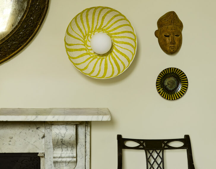 Sight Unseen Collection mainstays Palefire have just launched their second collection of dyed and hand-painted paper pulp lamps, all based around a classic dome shape. The new chartreuse wave motif above is my favorite.
