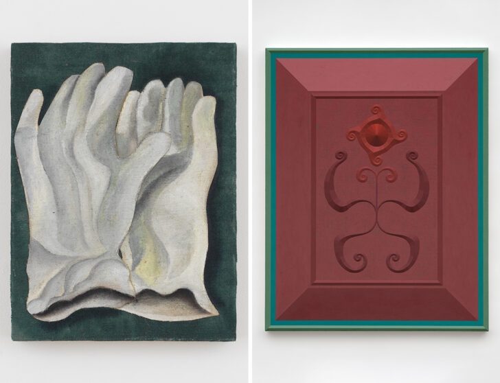 Isabel Rower’s new show at Marta, on view through April 4, encompasses paintings, furniture, and objects that reference the historical. Photos: Erik Benjamins (top) and Sean Davidson (bottom)