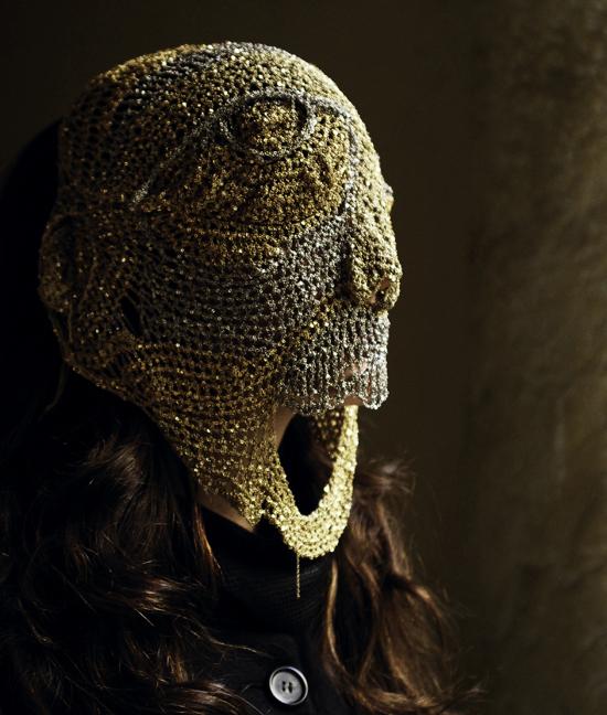 429 / 2945 de_pinto_mask5 arielle de pinto hand-crocheted masks photography: thomas lillo model: Laetitia Queyranne